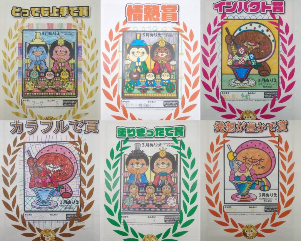 3月のぬり絵受賞者の発表です🥳 今月も彩り豊かな作品の数々に…
