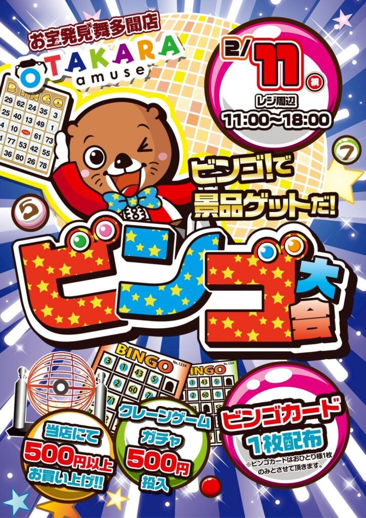 本日のイベントお知らせ📢 11時から18時の間ビンゴを開催してお…